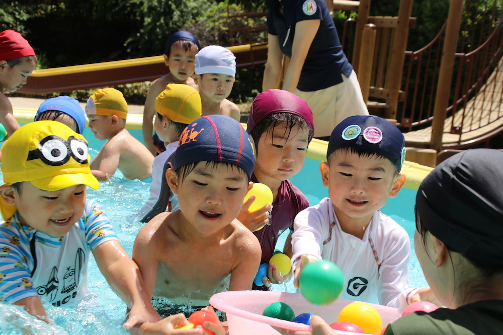 色々なゲームをしながら楽しんで水に触れています!