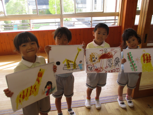 そして、動物園遠足の絵を描きました!