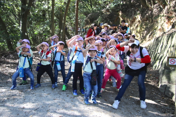 坂道を登り、ながーい階段をきつくても一生懸命に登る子ども達でした!