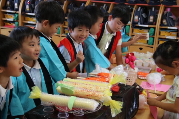 笑顔でお客さんを呼び込んでいますね!まるで本物の屋台のようでした☆