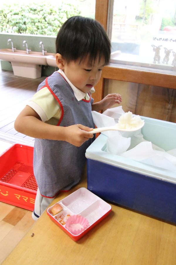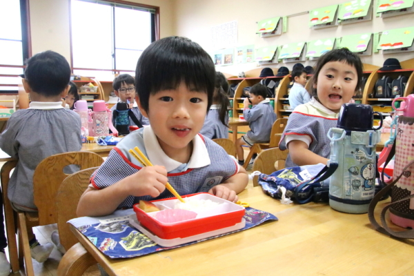 年中・年少も朝から「今日くすっ子米の日やろ~?」