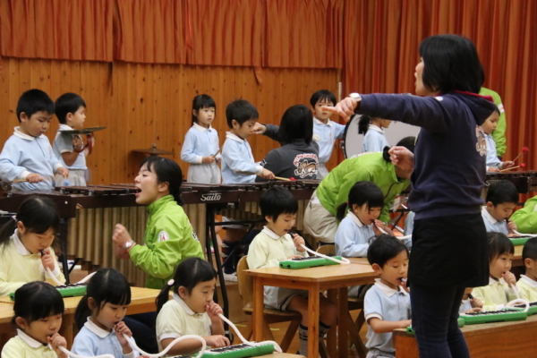 まずは年中・年長合同の鍵盤ハーモニカでのオープニング!