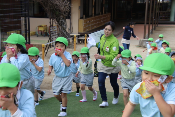 二歳児も口を押さえて避難できましたよ。
