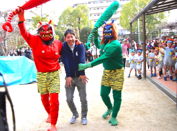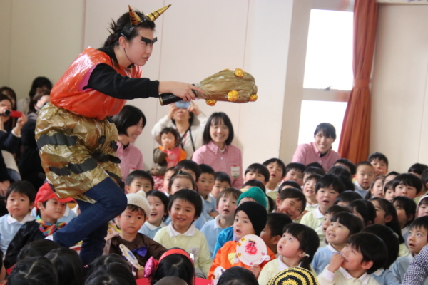 自分で作った枡から豆を取り出して、必死に鬼と戦いました!!