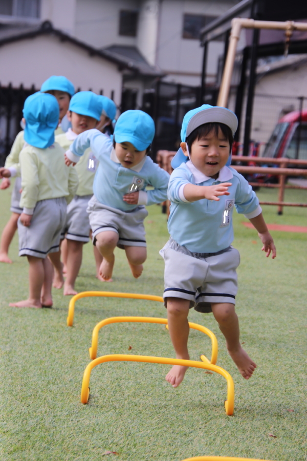 黄色のバーを足をグーにして飛び越えることが上手にできるようになりました♪