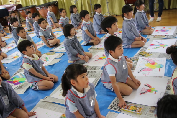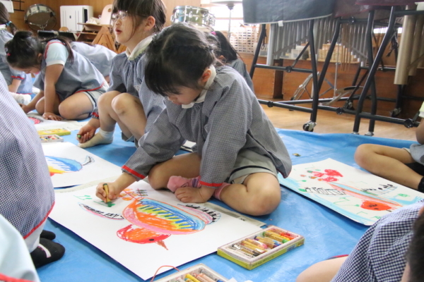 ライオンやザリガニを大きな画用紙いっぱいに書きましたよ☆