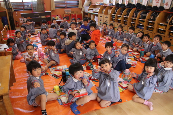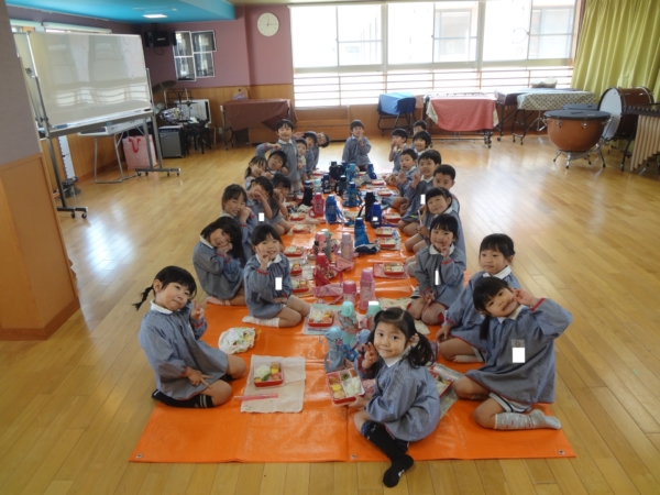 今日は誕生会のご褒美で、さくら組とふたば組が