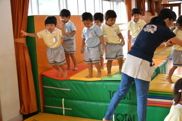 高いマットの上からジャーンプ!!