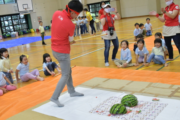 森の木幼稚園、もみの木幼稚園、くすの木幼稚園のお友達全員と学園音頭を踊ったり
