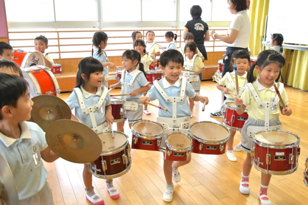 鼓隊の子ども達は初めて