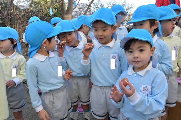 と球根を嬉しそうに見ていた年中組