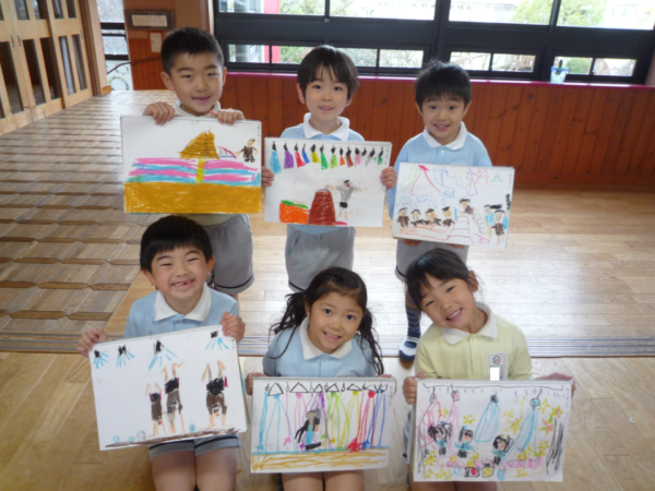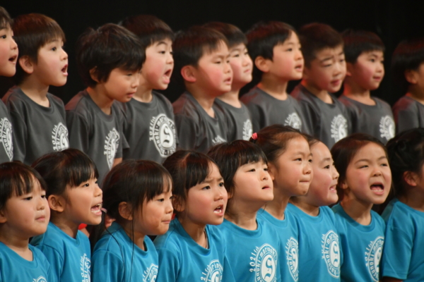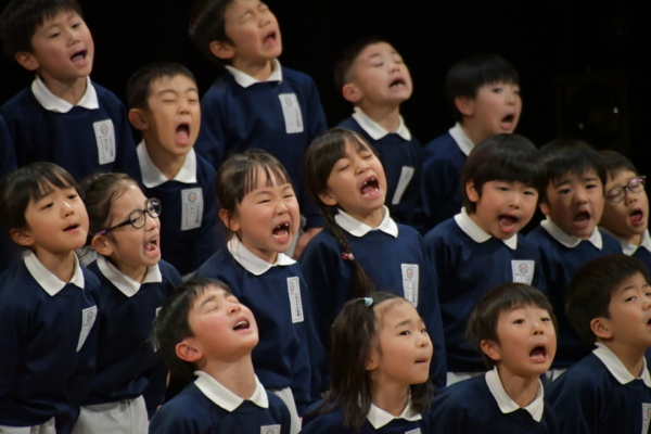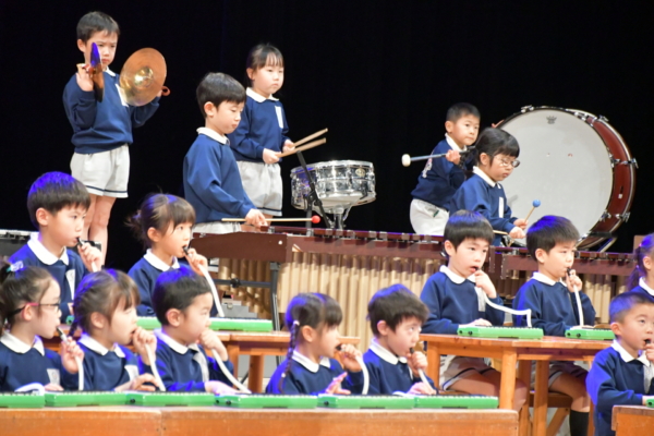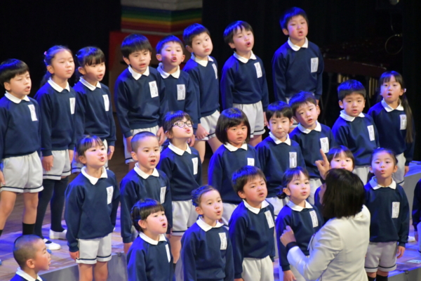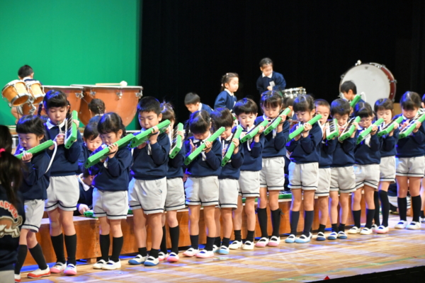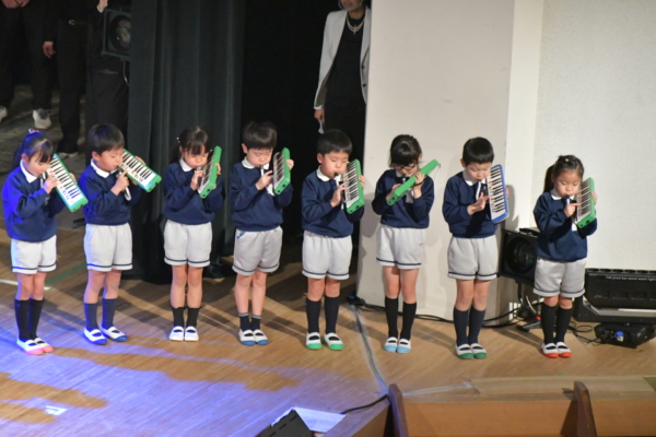 「上を向いて歩こう」の曲を年中と一緒に弾きました