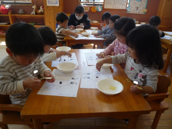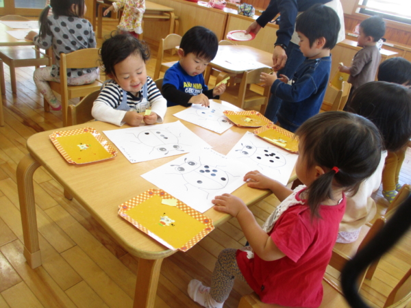 ちょうちょうやてんとう虫にシールを貼りましたよ!