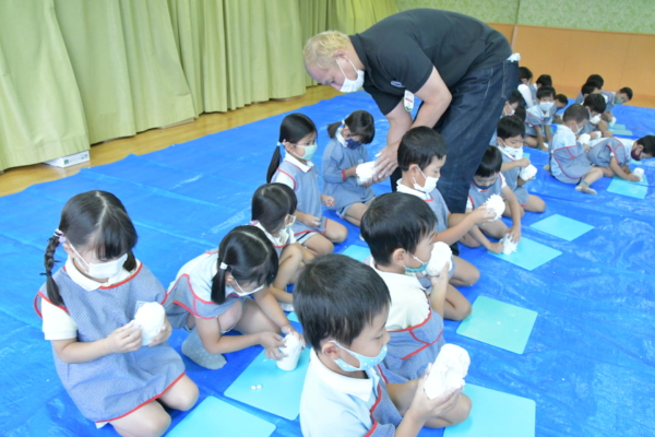 そして今日は年長組が『くすっ子米』を持ち帰っています。