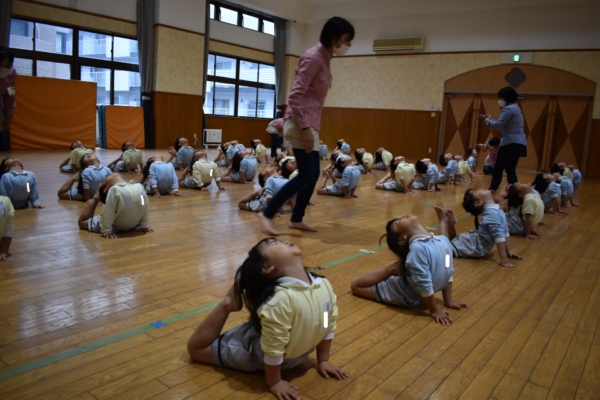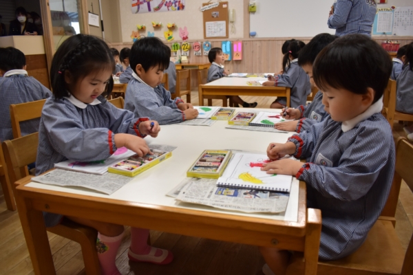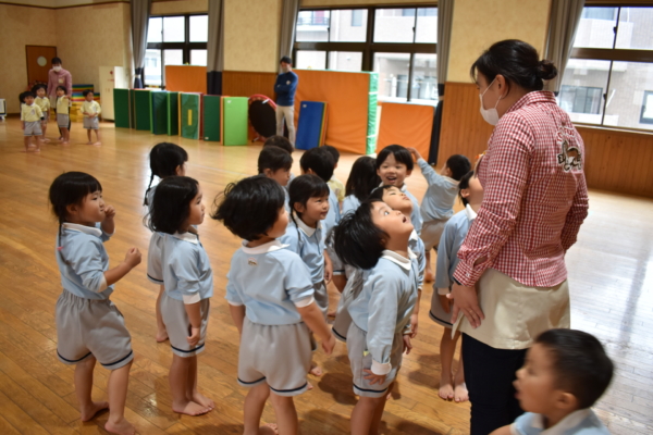 自分の名前を大きな声で発表し、園歌を歌った後は、