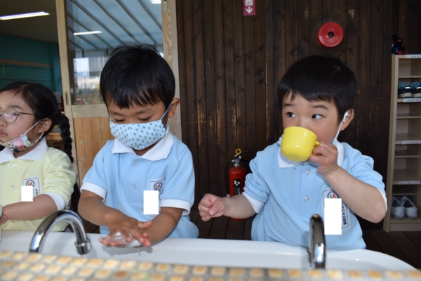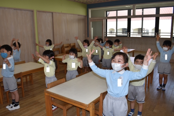 園歌を歌ったり、みんなでもみっ子唱和をしています。