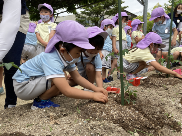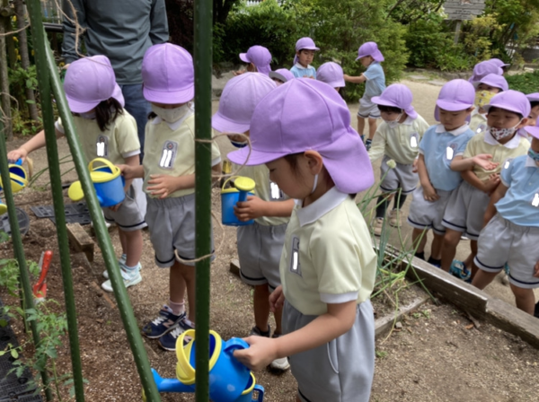 そして、みんなで協力して土をかぶせて、水をあげて・・・
