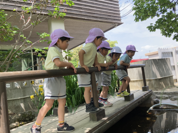 と、池の中を泳ぐメダカに興味津々の子ども達でした。