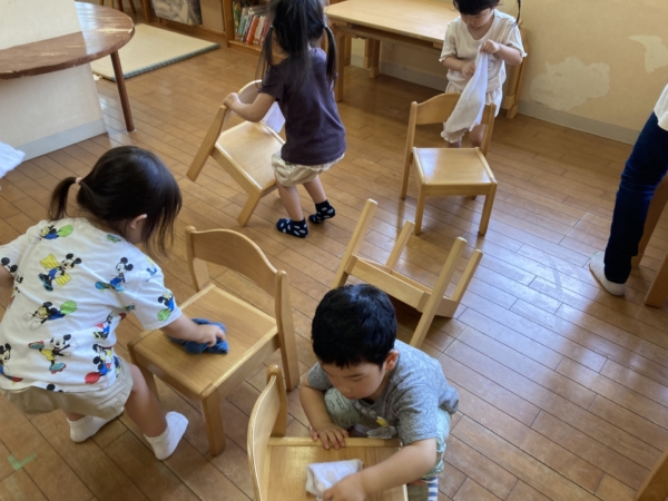 窓や絵本棚も綺麗に拭き、掃除をしました。