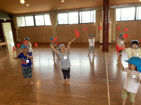 赤色の旗を振ったり回したりして踊ります。