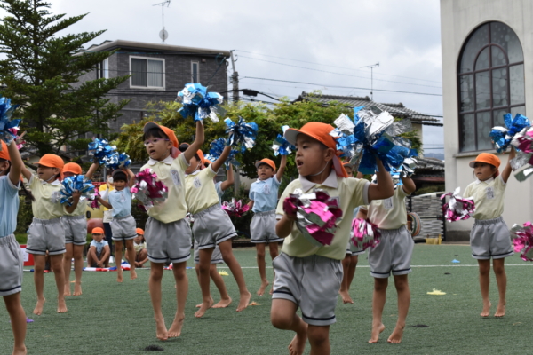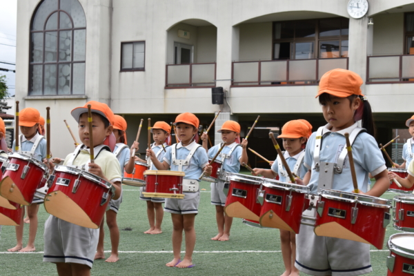数日ぶりに、園庭にマーチングの曲が流れ、
