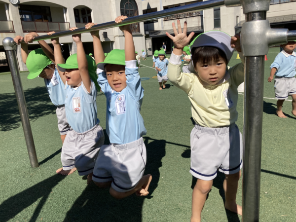 鉄棒に捕まったり、ジャンプをしたりと