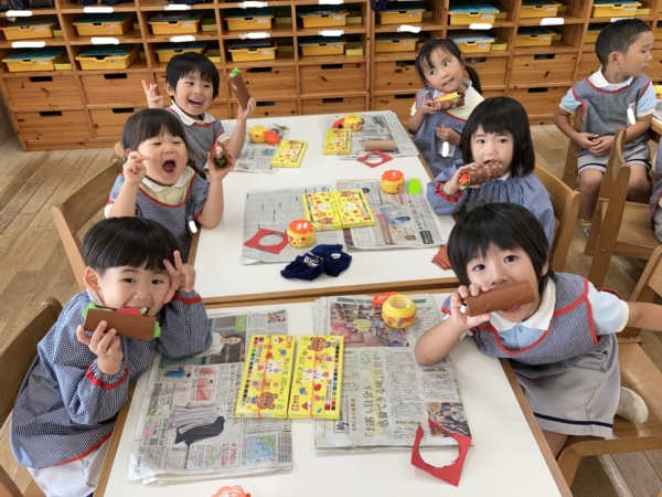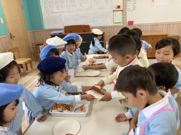 具材を挟んで「おいしそう」と言いながら作っていました。