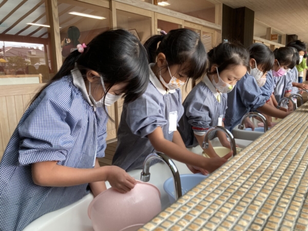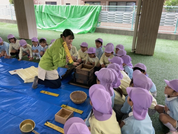 そして、年長はもち米を洗いました。