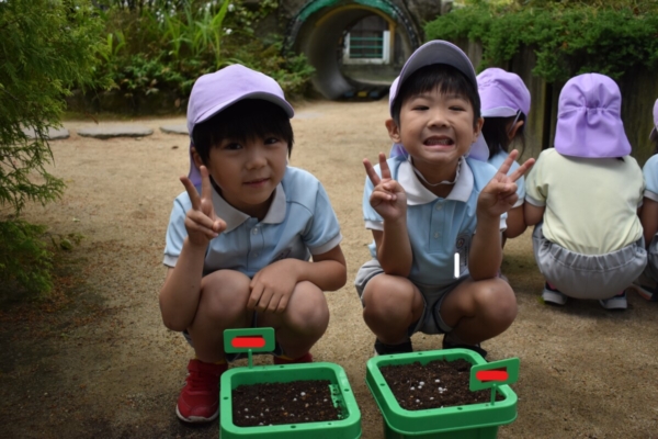 自分達で土を入れ種を植え、最後には水をあげました☆