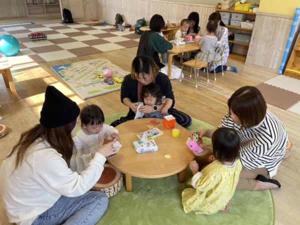 折り紙で作ったどんぐりを入れて遊びました!
