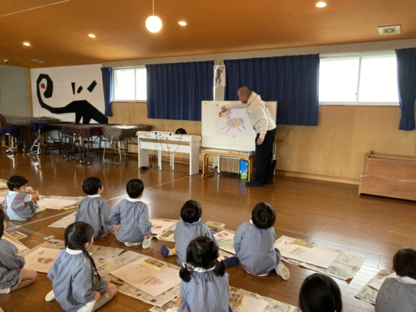 たんぽぽにちょうちょうやてんとう虫を貼って、