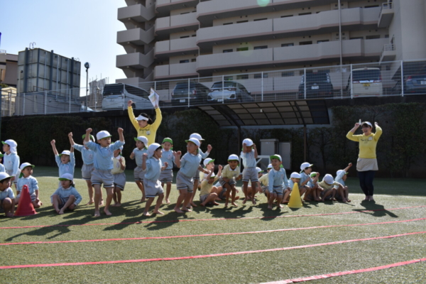 くすの木幼稚園に着くとまずはウォーミングアップ!