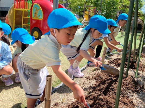 自由遊びの時間には、「早くトマトがならないかな~」と