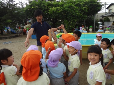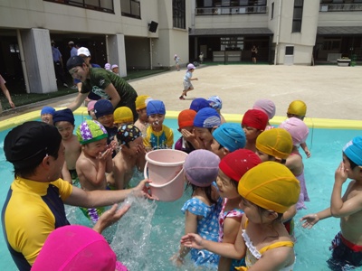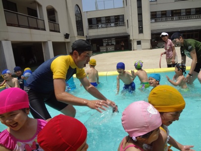 園長先生からプールの中に頭をジャボーン!