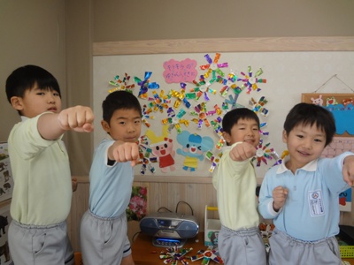今日は、壁面製作をしてクラスも1月らしくなりました(^o^)