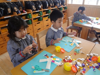 折り紙を手でちぎったりハサミを使ったりと頑張って作る姿が見られました(*^。^*)
