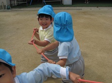 友達と縄跳び・・・の引っ張り合い~!