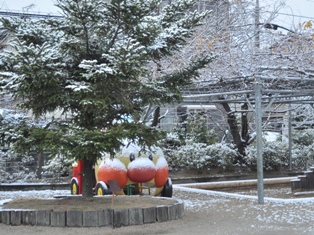茶色のキンダーホールの屋根もこんな感じで真っ白!
