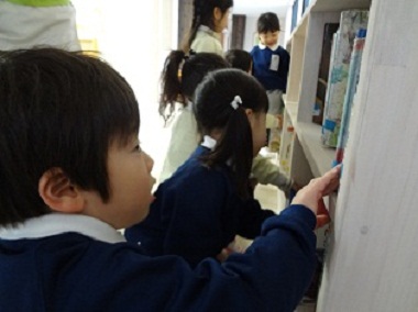 年中の子どもは、2階の廊下にある絵本棚が嬉しいようで、