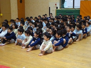 また、年中の時と違い、2人掛けの机になった年長組の子どもは…