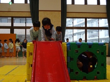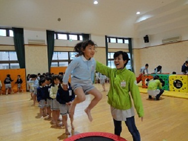 トランポリンを使ったり、大きな滑り台を滑ったりして遊びました!