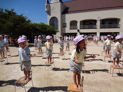 まずは、年少組の椅子体操。