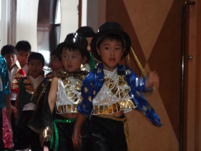 まずは、可愛い、かっこいい衣装に身を包んだ子どもがキンダーホールに集結!