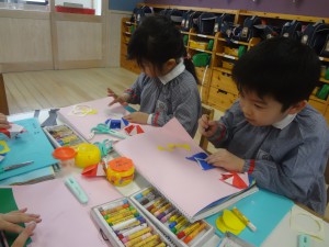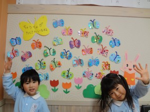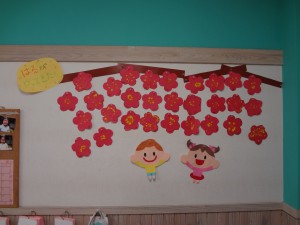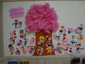 さくらを作ったクラスなど、春の飾りを作りましたよ(*^。^*)