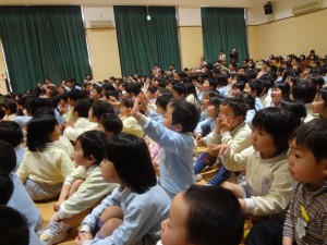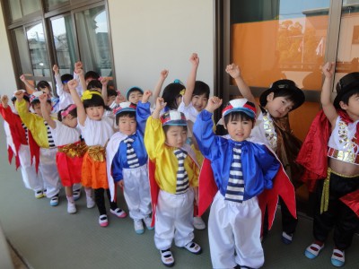 園長先生が弾くギターに合わせて大きな声で歌いました♪