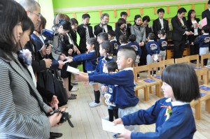 園長先生からもらう卒園証書