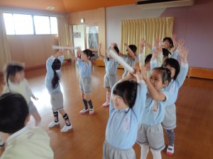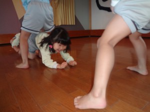 朝は、「だるまさんが転んだ~♪」