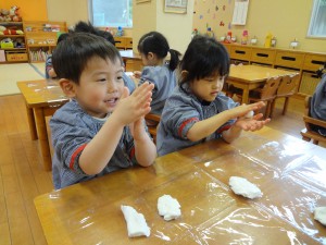 粘土の感触を楽しんでいました(*^_^*)