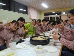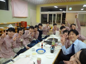 みんなでワイワイ餃子をつつきながら