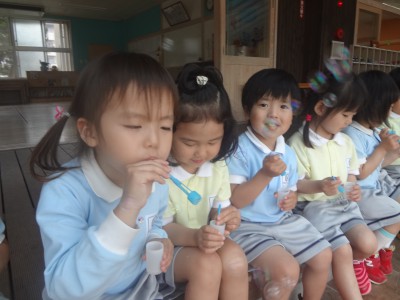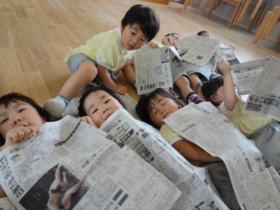 新聞紙やシャボン玉で遊びましたヽ(^。^)ノ